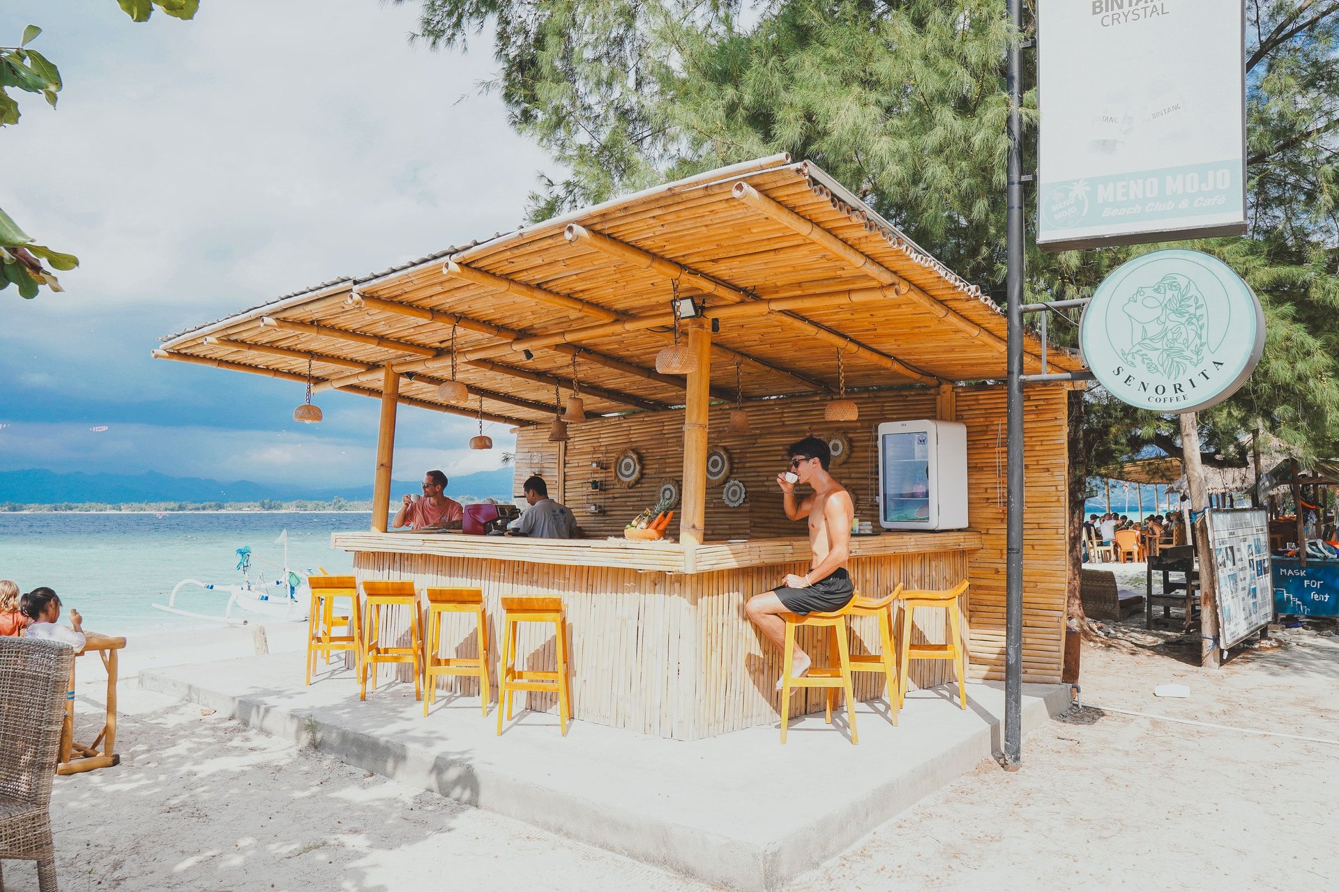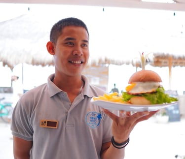Connected to Meno Mojo Beach Resort, Senorita Coffee Café is a beachfront gem where wellness and tropical vibes collide. Indulge in vibrant smoothie bowls, energizing matcha lattes, rich cappuccinos, or the refreshing taste of fresh young coconuts, all while soaking in stunning ocean views.