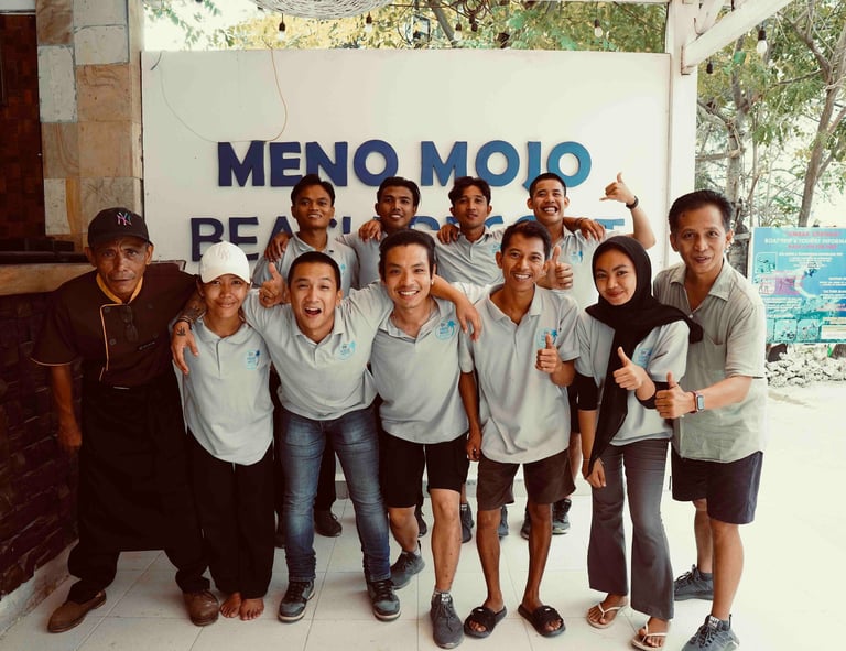 At Meno Mojo, it’s not only our beach resort and turquoise waters that make the magic happen - it’s our incredible team as well. We are more than just colleagues; we’re a family. A team that works seamlessly together, supports one another, and brings a spark of enthusiasm to everything we do.