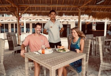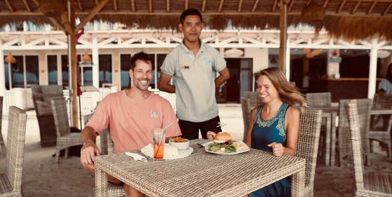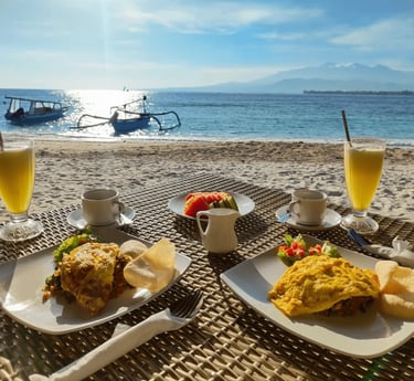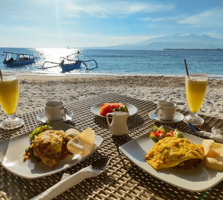 Our oceanfront restaurant at Meno Mojo Beach Resort brings Gili Meno’s flavors to your table. Just 5 meters from the rooms, enjoy breakfast, lunch, and dinner with fresh seafood BBQs, beef rendang, and international options. With ocean views and friendly staff, it’s an affordable dining Gili Meno experience for all.